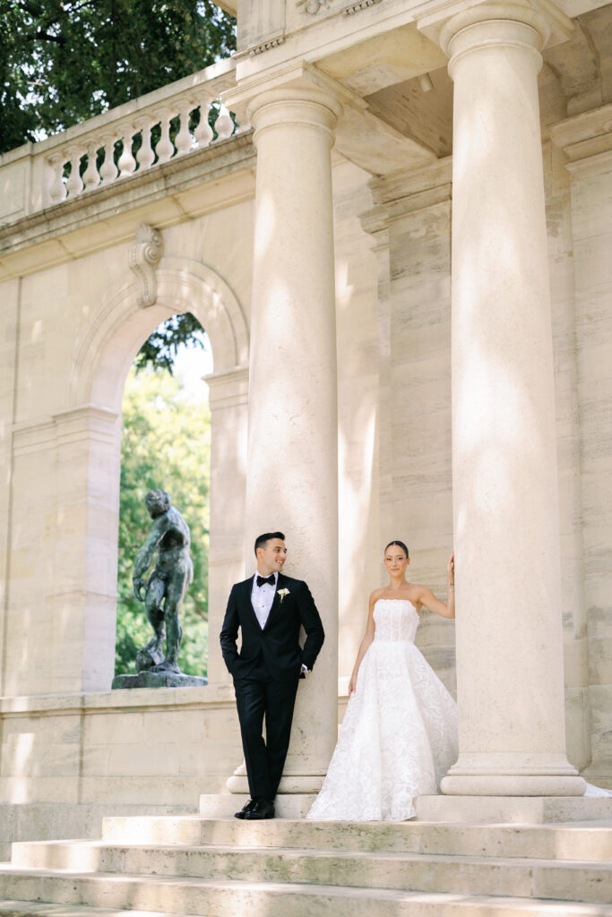 We started the day with their first look and private vows to each other, which was beautiful to witness. Taking moments together at the Rodin Museum and City Hall were unforgettable. The sculptures and gardens were stunning. The soft light draped over the couple, adding a magical touch to every shot. There, Sara and Scott radiated love in each image.